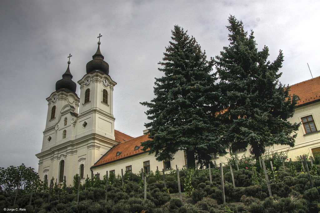 O centro da cidade e do distrito de Tihany, na Hungria, é uma abadia beneditina fundada em 1055 pelo rei André I, que está enterrado na cripta.